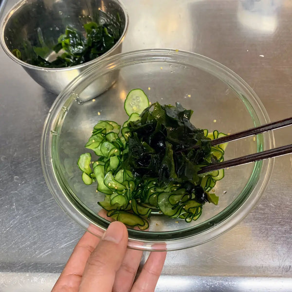 Today, we will introduce a cucumber sunomono recipe including wakame seaweed. You can also add other ingredients like boiled octopus pieces or canned tuna to bulk up the salad if you wish. We hope that you will enjoy our simple recipe and try it out for yourself too. Let us know in the comments how you liked this cucumber salad!
