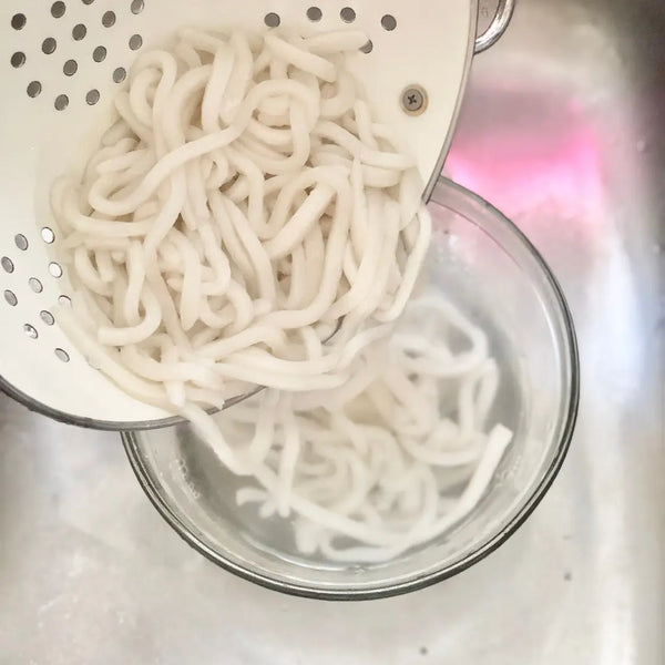 The combination of rice flour and tapioca flour creates noodles that are smooth, slightly chewy, and light. While the bounce is a little softer than wheat-based udon, the noodles still hold their shape well and slurp beautifully. These homemade gluten-free noodles are easy to work with and adapt well to both hot and cold dishes, making them a great base for many gluten-free Japanese recipes.