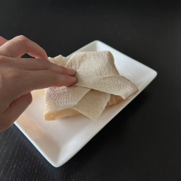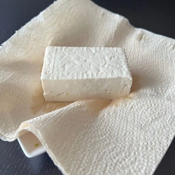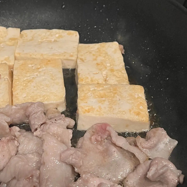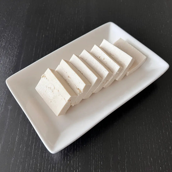 As mentioned above, shima-dofu is used to make an authentic goya champuru. Shima-dofu is a firm-typed, big, dense block of tofu. It is native to Okinawa. The ingredients are the same as ordinary tofu, but the process of making it is different. Shima-dofu is made by crushing soybeans soaked in water. It is squeezed and separated into soy milk and raw Okara (soy pulp). Then, bittern is added to the soy milk. After simmering, the soy mixture is placed into a mold and drained thoroughly. This makes the texture of Shima-dofu unique.