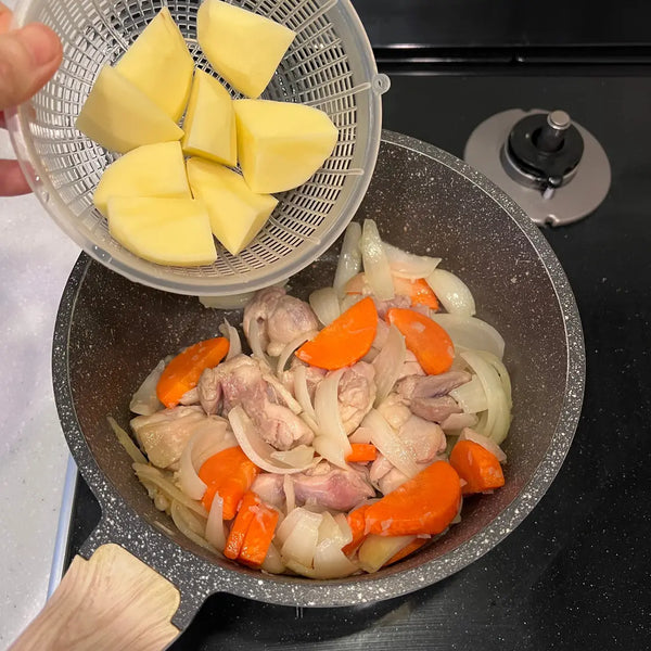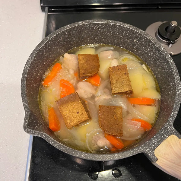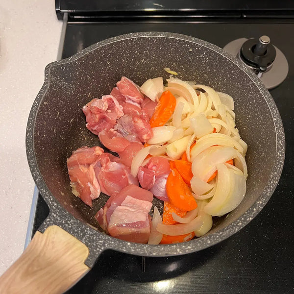 In our last recipe, we shared with you how you can easily make Japanese curry roux from scratch. By using our recipe, or using your favorite boxed curry roux, you can easily recreate a hearty and flavorful Japanese curry at home. We'll use simple ingredients such as chicken thighs, onions, carrots, and potatoes as the base ingredients for our curry, but you can use your favorite proteins and vegetables that you like to have in curry. Along with just a few simple pantry staple ingredients, you'll have a flavorful bowl of curry in no time! We also have a recipe for Japanese curry with chicken katsu, which you can find on our website.