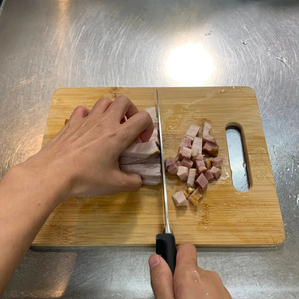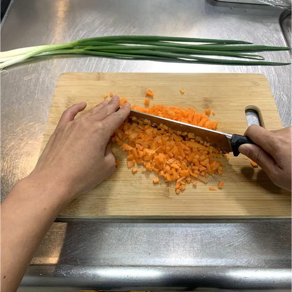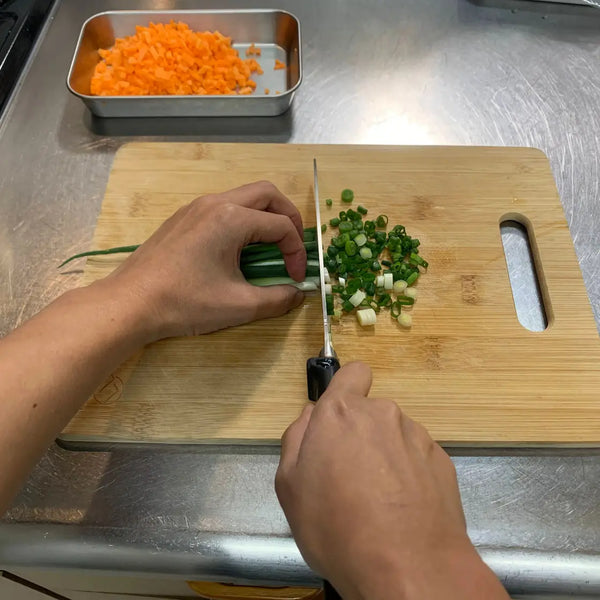 In this recipe, we’re going to use bacon, but you can use other proteins such as chashu, sausage, chicken, shrimp, tofu, or even leave it out. For vegetables, we’ll use carrots and green onions, but other common ingredients in yakimeshi are shiitake mushrooms and green peas. Alternatively, you can use any other vegetable you see fit.