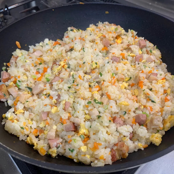 Yakimeshi is the Japanese take on fried rice. It is a stir-fried dish consisting of rice, finely chopped meat, vegetables, and eggs and is seasoned with soy sauce and chicken stock powder.