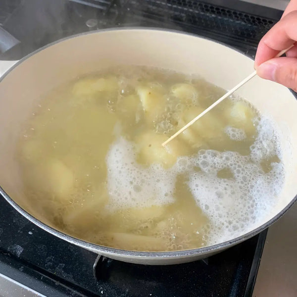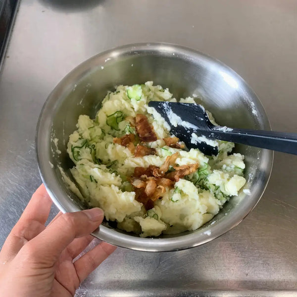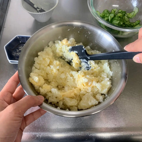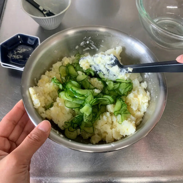 Are you familiar with Japanese potato salad? Japanese potato salad is different from other countries' potato salads as the potatoes are mashed and seasoned with Japanese mayonnaise. It often includes other ingredients such as cucumbers, but you can also add in any of your favorite toppings. Potato salad is one of Japan's most popular home-style dishes, and the ingredients vary from household to household.