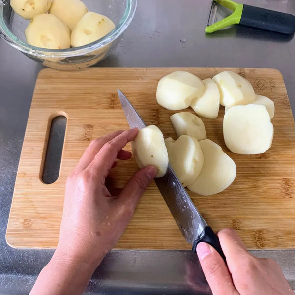 In our recipe, we'll make potato salad with crispy bacon. We are using ingredients that are easy to find and are inexpensive, so we hope you’ll try making our Japanese potato salad recipe at home!