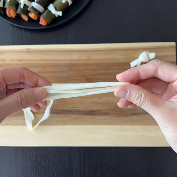 When preparing Kombu rolls, it's important to note that there are different varieties of Kombu, such as Ma-kombu, Rausu-kombu, and Rishiri-kombu. For Kombu rolls, "Hidaka Kombu", known for its soft texture and minimal fiber is typically preferred.