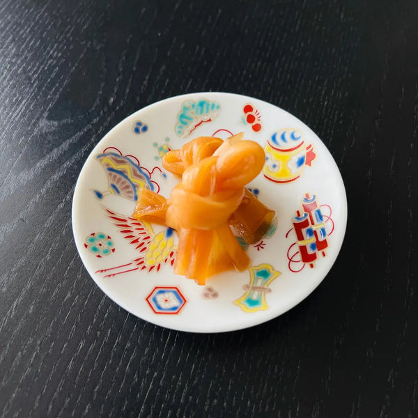 The Kombu roll is crafted using Kombu, fish, and Kanpyo (dried gourd strips). The fish is wrapped with Kombu and secured with Kanpyo. The Kombu roll is then simmered in a soy sauce-based seasoning, allowing you to savor the Umami flavor of Kombu and fish infused with the savory taste of soy sauce.