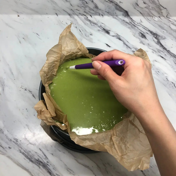 Once it's out of the oven, let it cool to bring out the flavors. Serving it chilled brings out the best of both worlds – the refreshing matcha taste and the creamy cheesecake texture.