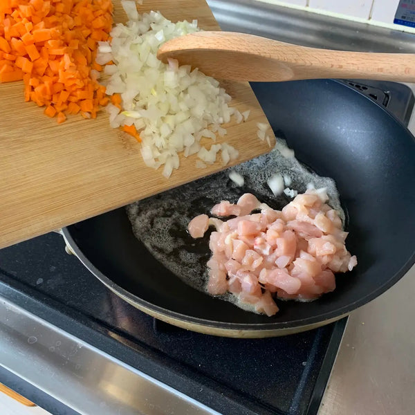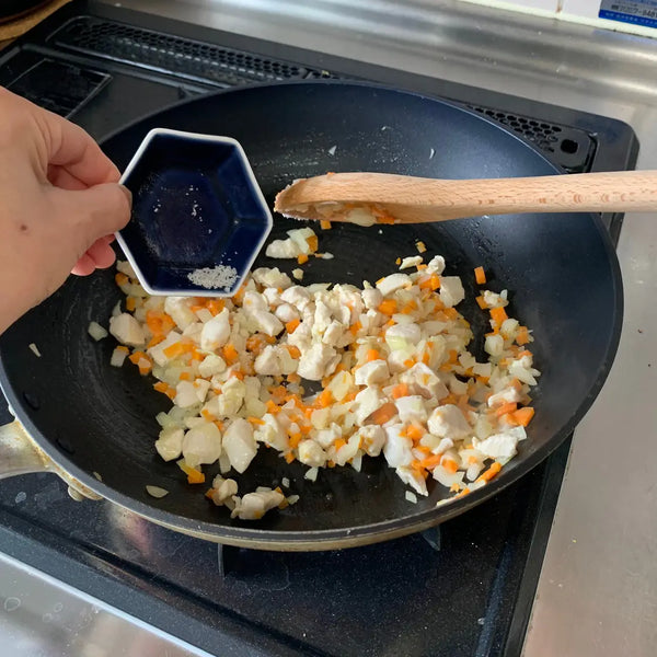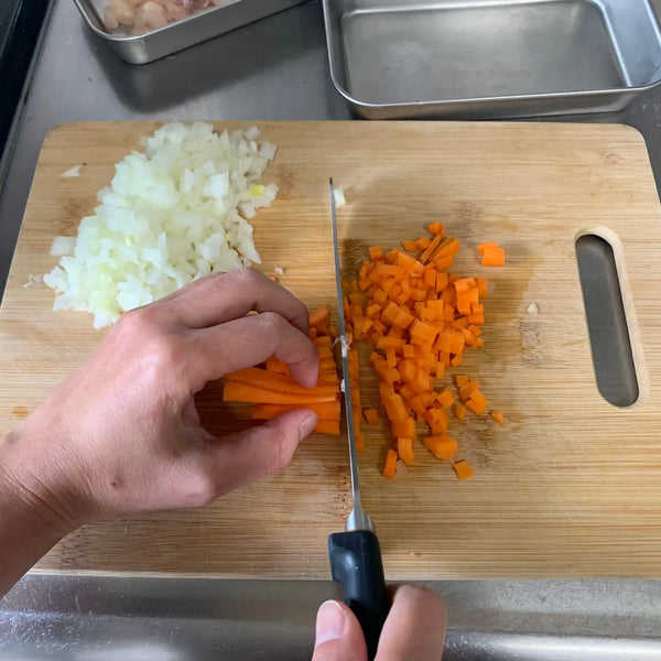 Today, we introduce an omurice recipe that can be easily made at home. For the ketchup fried rice, we will be adding chicken, onions, and carrots, but feel free to use your favorite protein and vegetables. Other vegetables such as mushrooms and bell peppers are commonly found in omurice too, so play around with this recipe and make your own original omurice!