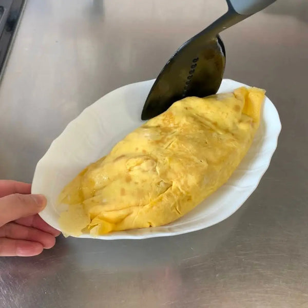 Omurice is a very popular western-style Japanese dish made up of ketchup fried rice wrapped in an omelet and finished with a ketchup sauce. The name "omurice" is a Japanese-English word made up of two English words: "omelet" + "rice.” It is a Japanese-Western fusion dish that combines a Western omelet with Japanese fried rice.