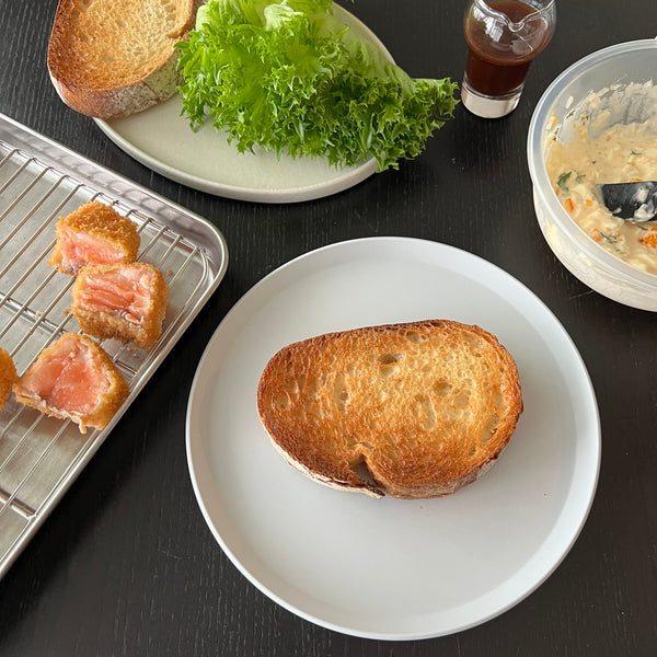 Although the salmon katsu sandwich is not a traditional Japanese dish, katsu with a rare center is something many Japanese people enjoy. For example, rare katsu dishes made with tuna (maguro) and beef (gyu) are also popular, in addition to salmon. Of course, if you prefer your salmon fully cooked, you can adjust the cooking time to ensure it’s well-done.