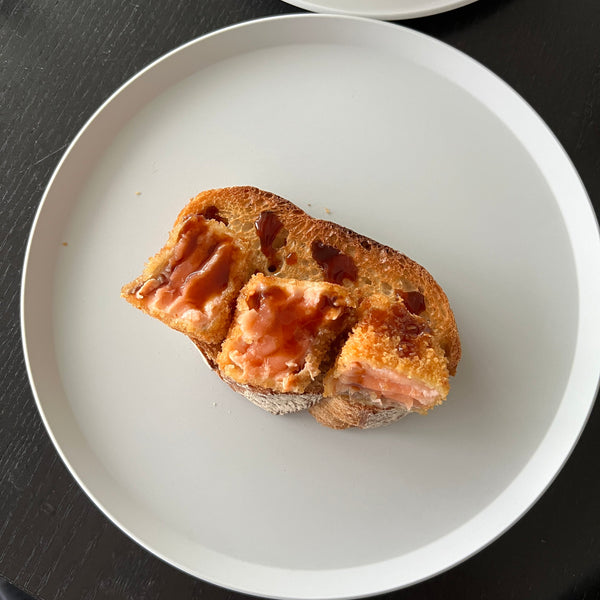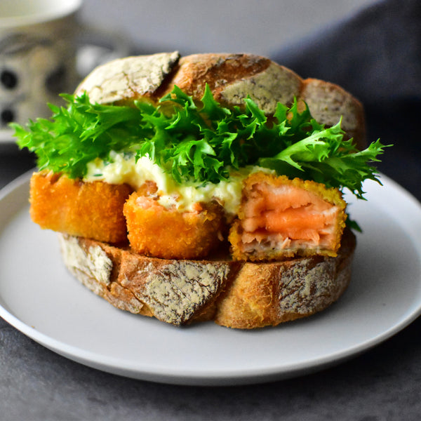 Give this unique salmon katsu sandwich a try! Enjoy the crispy texture, creamy tartar sauce, and rare, flavorful center. Let us know how it turns out!