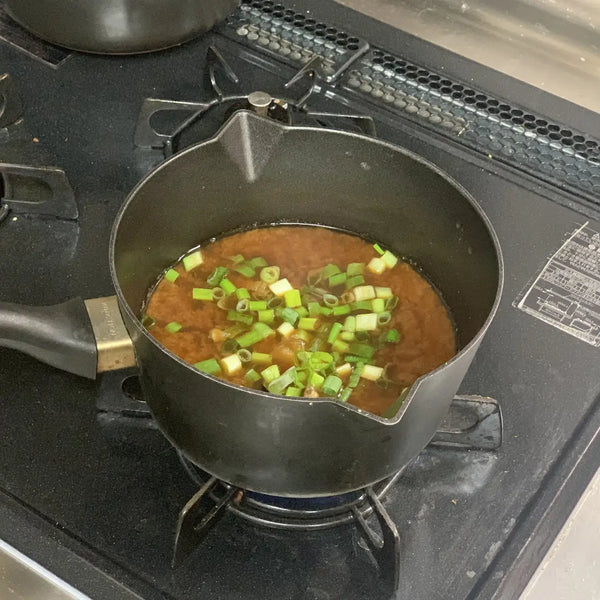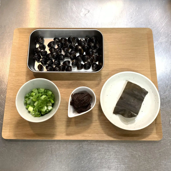 Add some freshly chopped green onions into the soup and you've got the perfect warm and comforting bowl of miso soup! It is more than just a side dish; it is a soothing ritual that brings a deep sense of satisfaction to any traditional Japanese meal. We invite you to slow down and savor every salty, savory sip of this bold winter classic. We hope you'll enjoy our simple recipe for a red miso soup, and while it is a bit of a labor of love, try it out for yourself at home too!
