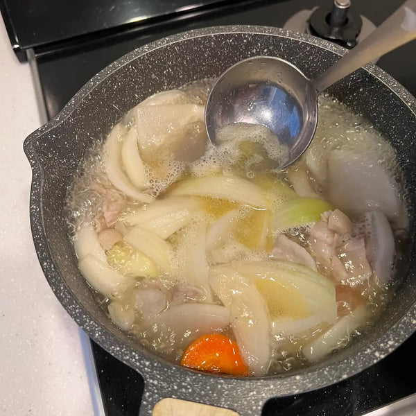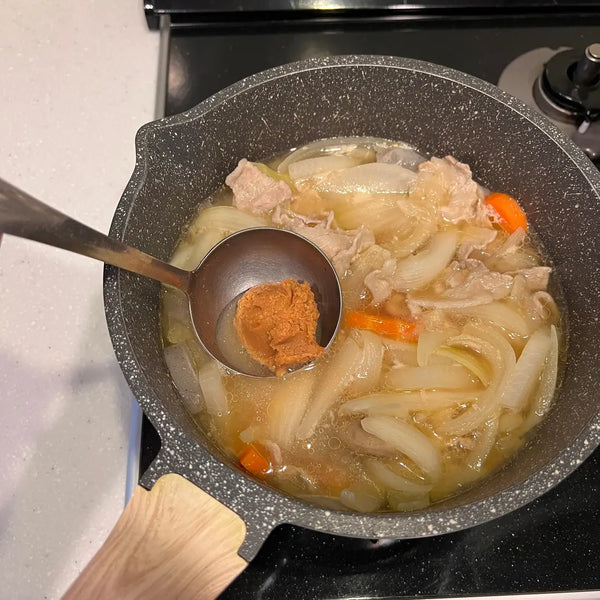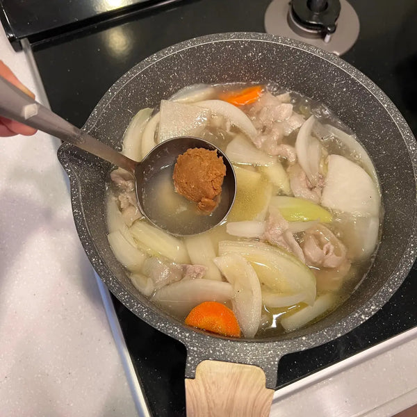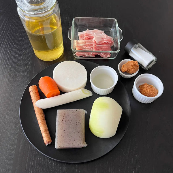 While you can find Tonjiru in some restaurants, it's often a homemade dish with families having their preferences for ingredients. In today's recipe, we will provide a basic Tonjiru recipe using pork, Japanese radish, carrot, burdock root, onion, konjac, and Japanese leek. Some variations include tofu, taro, potato, sweet potato, cabbage, shiitake mushroom, Shimeji mushroom, etc. To add spice, grated ginger is sometimes used as an accent.