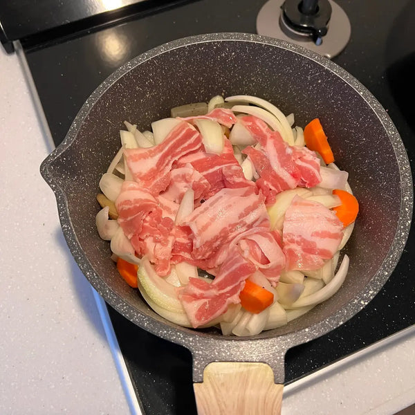Tonjiru, a type of miso soup, is renowned for its rich flavor, courtesy of its diverse ingredients. The key player in Tonjiru is sliced pork, as indicated by the dish's name – 'Ton (豚)' means 'pork' in English. Optimal for Tonjiru is pork belly, imparting delicious richness and savory umami flavor.