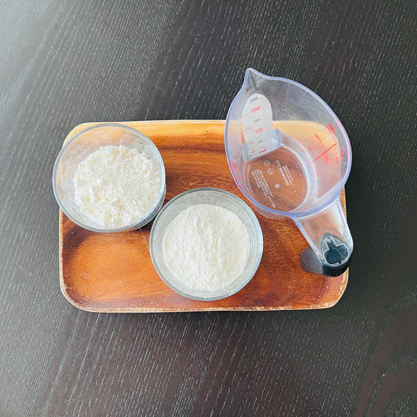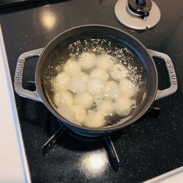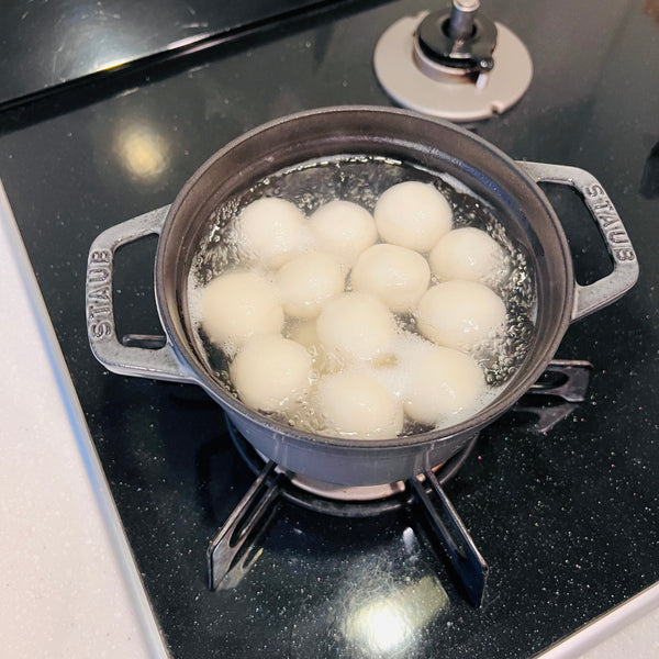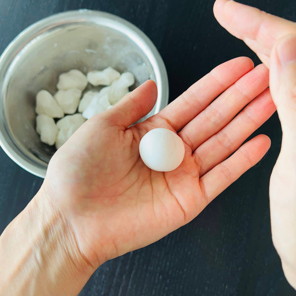 Now that you know a little bit about the background of Otsukimi and how to display Tsukimi Dango, let’s talk about how to make it at home. The main ingredient of Tsukimi Dango is “Joshinko” which is a type of rice flour made from Uruchi-mai (the most popular type of rice in Japan). The main characteristic of Joshinko is that it gives dango a firmer and harder texture. In order to combat this and enjoy mochi softer texture, we will add “Shiratamako” so that the texture of the dango becomes soft, smooth, and chewy. If you can’t find Joshinko or Shiratamako in your local Asian or Japanese supermarket, you can find both of them on our website.