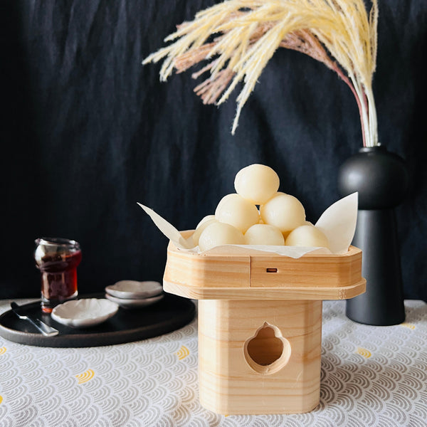 If you’ve seen Tsukimi Dango before, it was probably served on a wooden stand. This wooden stand is called “Sanpou” which is a traditional tool to present offerings to the gods. Sanpou has holes that face in three directions. When offering something on a sanpou, to the altar, the side without a hole should face the altar. In the case of Otsukimi, the side that does not have a hole should face the moon. Where you decide to place the sanpou should be somewhere with a beautiful view of the moon. This is the way in which tsukimi dango is typically and traditionally enjoyed, but of course, you can enjoy Otsukimi in YOUR style!