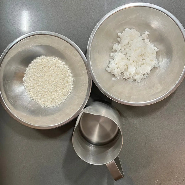 To make Koji Amazake, you only need three ingredients: cooked rice, Koji, and water. While there's a recipe without cooked rice, it's key for a sweeter Amazake.