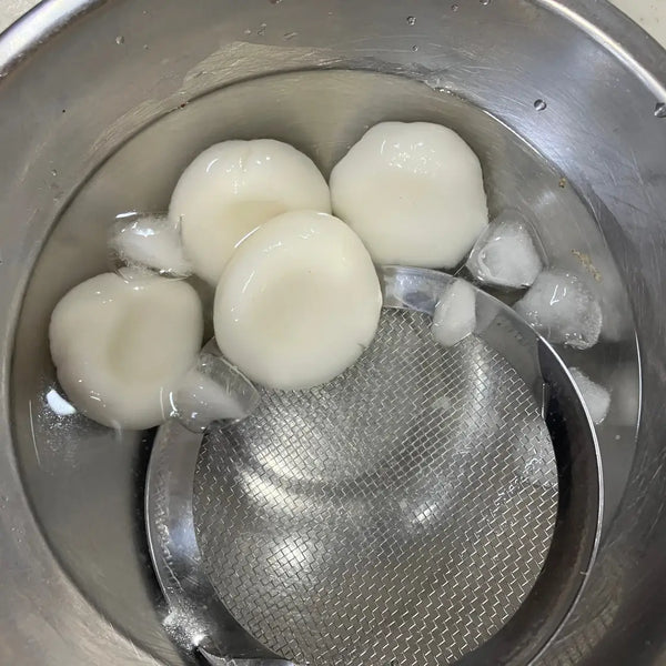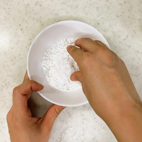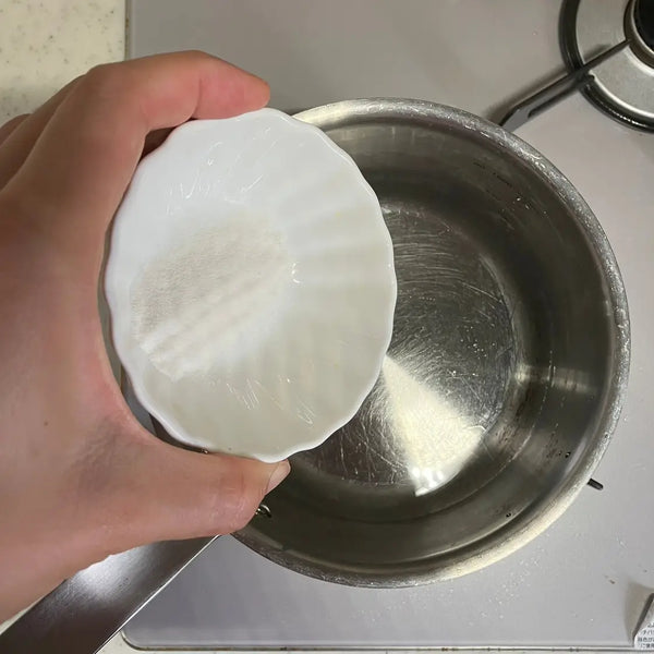 When shopping for kanten, you'll find it in four different forms: powder, stick, thread, and flakes. For this recipe, powdered kanten is used as it is the easiest for beginners to work with and evenly dissolves in water.