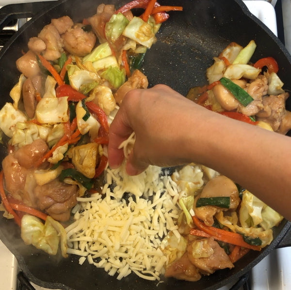 Cheese dak galbi is a beloved Korean stir-fried chicken dish that hails from Chuncheon, but this Japanese-style version gives it a deliciously homey twist with local ingredients and milder seasonings, making it perfect for family meals.