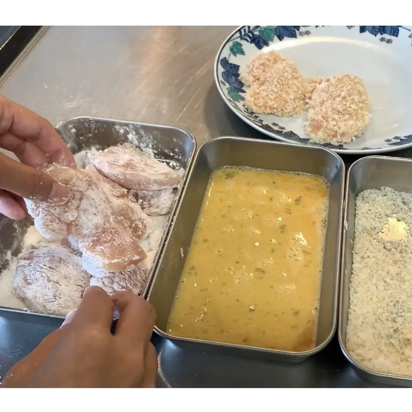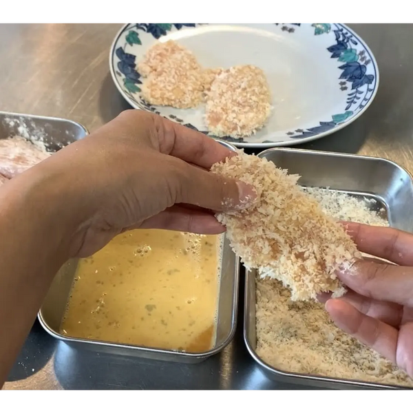 Before that, let's talk a little bit more about what the chicken katsu dish actually is and why it's popular. 'katsu' is short for 'katsuretsu' or cutlet in English. It is a general term used in Japanese cooking for meat or seafood that has been breaded with panko breadcrumbs and fried. The inspiration of fried katsu is said to come from the German 'Schnitzel', which is thinly sliced meat that is breaded and fried.