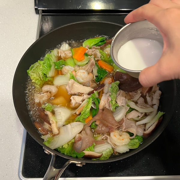 The seasoning for chukadon is simple—salt, soy sauce, and chicken stock create a mild, balanced flavor, with oyster sauce often added for depth. Each ingredient brings its own unique umami flavor to the dish.