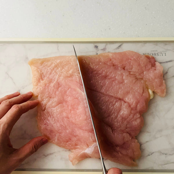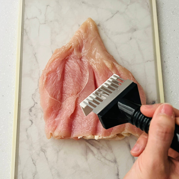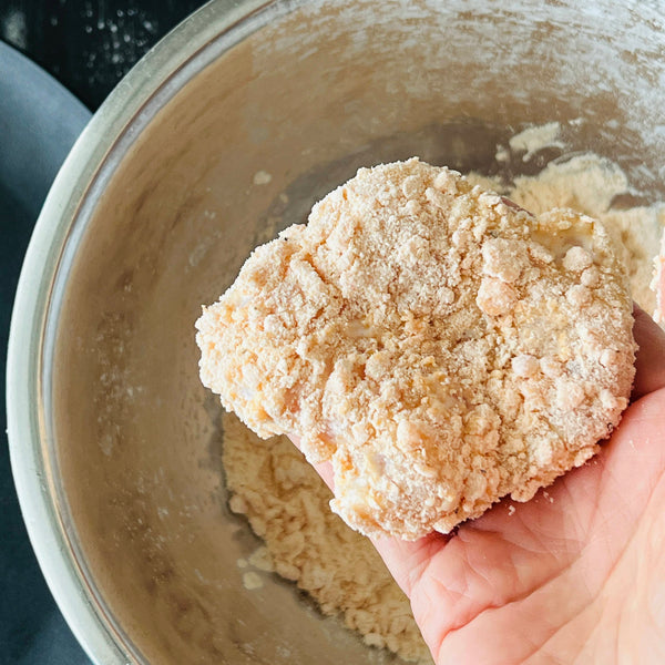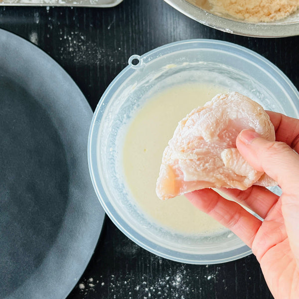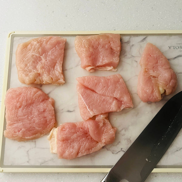 According to the official website, Famichiki is made using chicken thigh for extra juiciness. For my recipe, however, I chose chicken breast because it’s easier to flatten evenly and cooks more consistently. To ensure the meat stays tender and moist, I added a special step to the preparation process that locks in the juices and prevents the chicken from drying out.