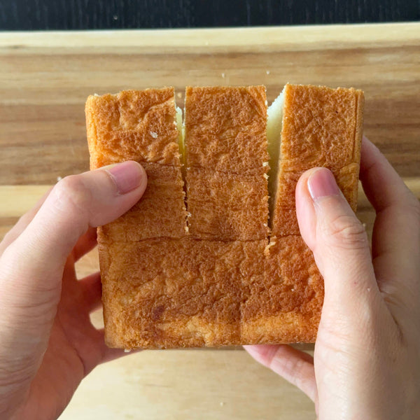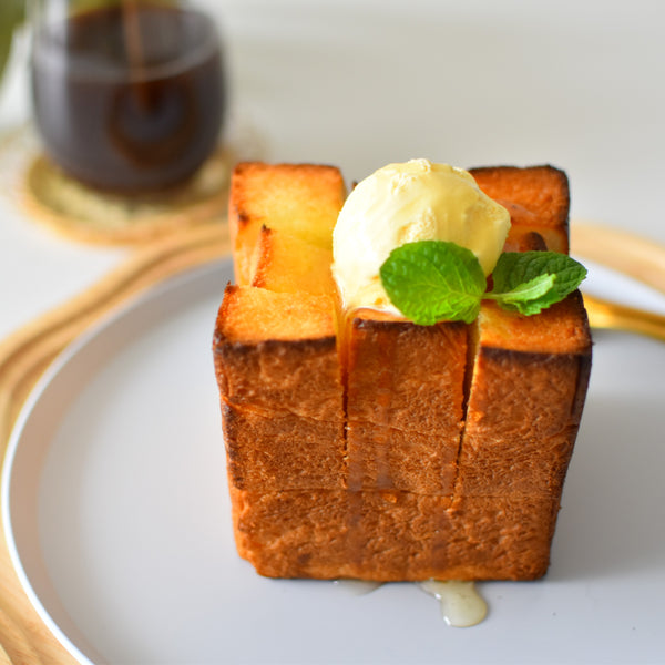 The key to this dessert is shokupan, a fluffy, silky bread that contrasts beautifully with its golden, crunchy crust when toasted. Unlike thinner Western versions, Japanese honey butter toast is made with thick blocks of shokupan, giving it a bold, indulgent look and texture. We also have a whole wheat version for a nuttier, more nutritious twist.