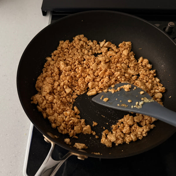 - Stir-fried crumbled tofu - Heat a pan, add dehydrated tofu, crumble with a spatula while cooking, and then mix in the seasoning.