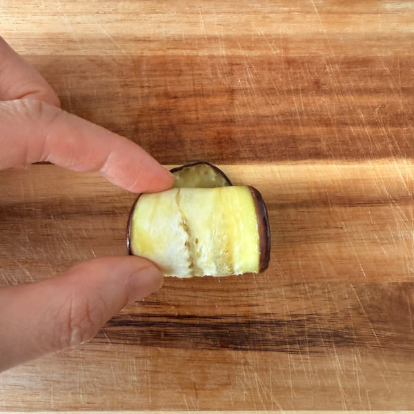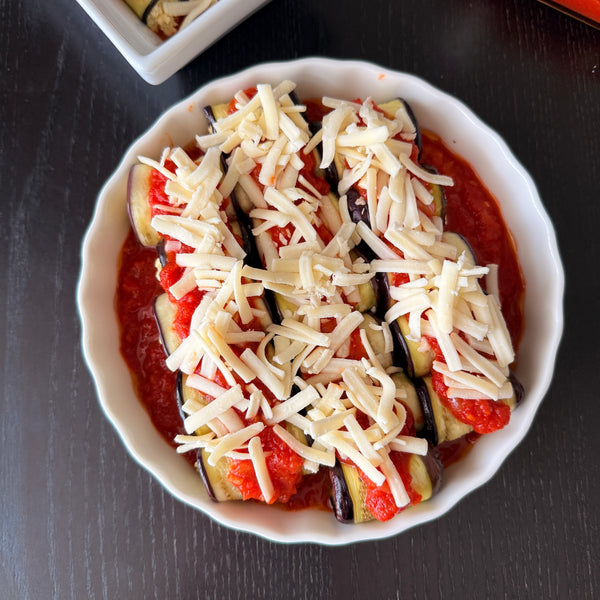 Eggplant rollatini is made by rolling thin slices of cooked eggplant with a filling, such as ricotta cheese and herbs, then baking them in tomato sauce. While Japanese people are accustomed to eggplant dishes, Rollatini itself is not commonly known in Japan. However, Japanese eggplant’s tender skin and soft texture make it ideal for Rollatini, resulting in a juicy, smooth, melt-in-your-mouth bite. Additionally, its perfect size makes each roll manageable in a single bite.