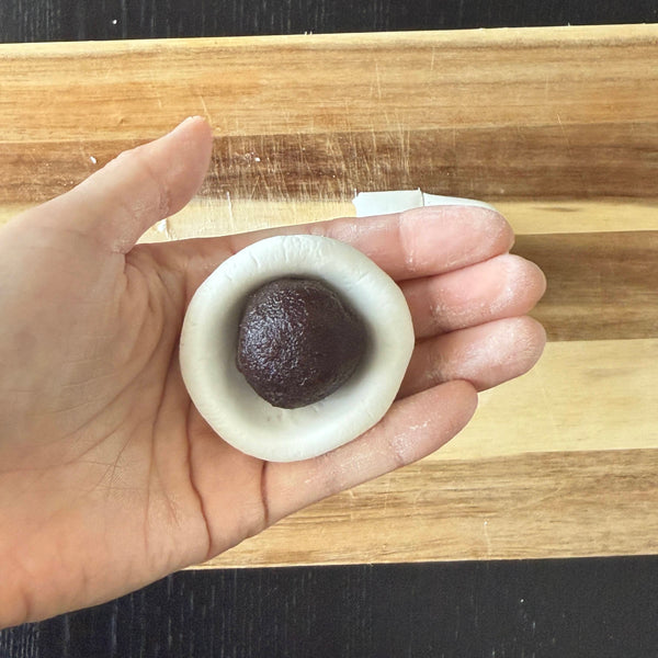 1. Reduce moisture from the azuki bean paste. Make sure the paste is firm enough to shape without sticking. If it’s too wet, microwave it briefly or rest it on paper towels to remove excess moisture.