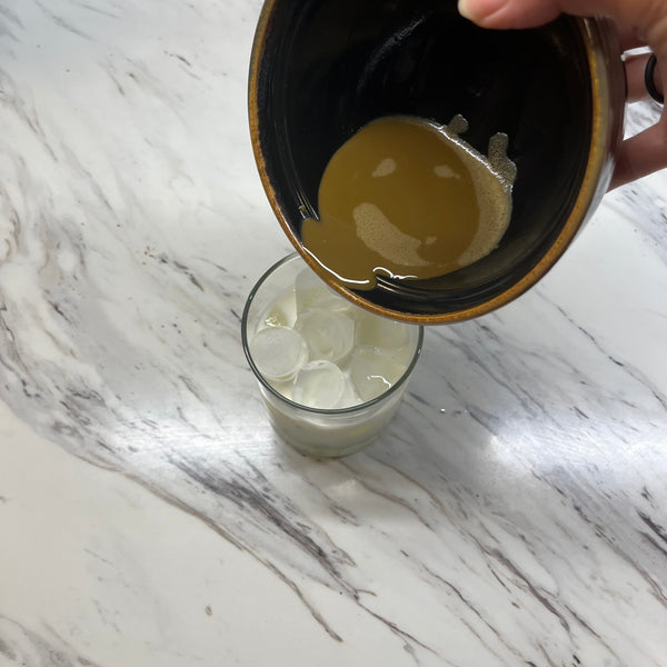 If you’re using loose-leaf hojicha, steep it in hot water for about 30 to 60 seconds—this short brew time preserves the tea’s natural sweetness and prevents bitterness. Then simply pour the tea over ice, add your milk and sweetener, stir, and enjoy.