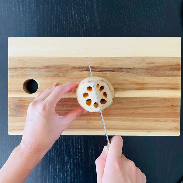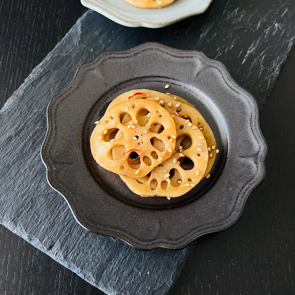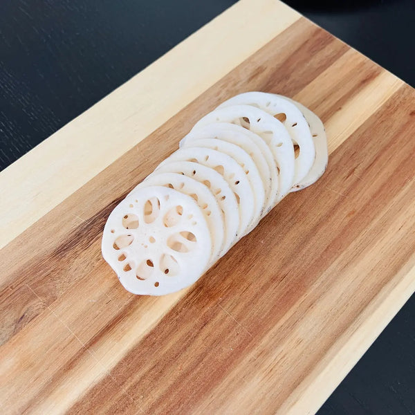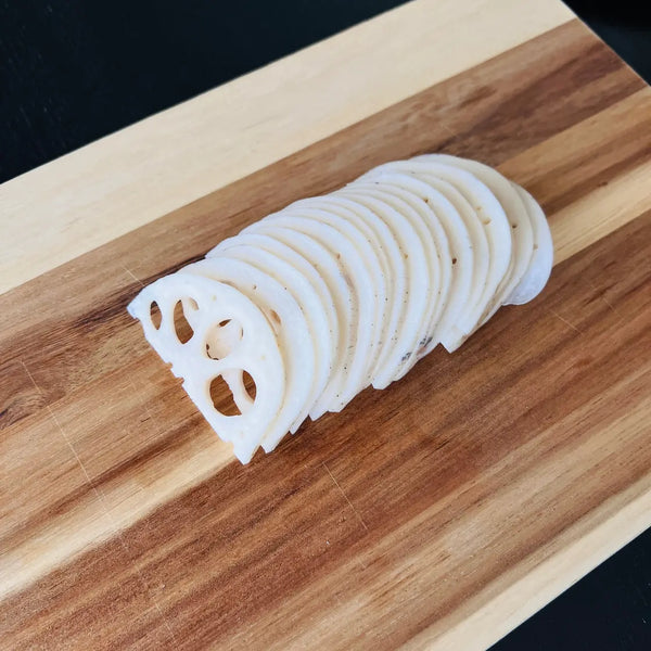 Renkon, known as "lotus root" in English, might give the impression of being a lotus root, but it's actually an enlarged "stem" of the lotus plant. Despite this, it's referred to as "蓮(ren=lotus) 根(kon=root)" in both Japanese and English due to its root-like appearance.
