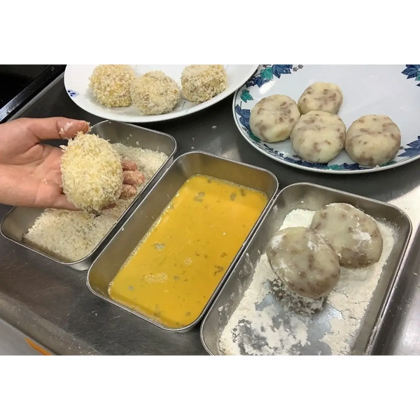 Korokke belongs to Yoshoku (洋食), a category of Japanese-Western fusion cuisine that became popular during the late 19th and early 20th centuries. The dish is said to have been inspired by the French “croquette.” While the traditional French version often features a creamy béchamel filling, the Japanese adaptation replaced this with mashed potatoes to better match local preferences and ingredients readily available at the time. Over generations, korokke evolved into a uniquely Japanese comfort food while still retaining traces of its European roots.