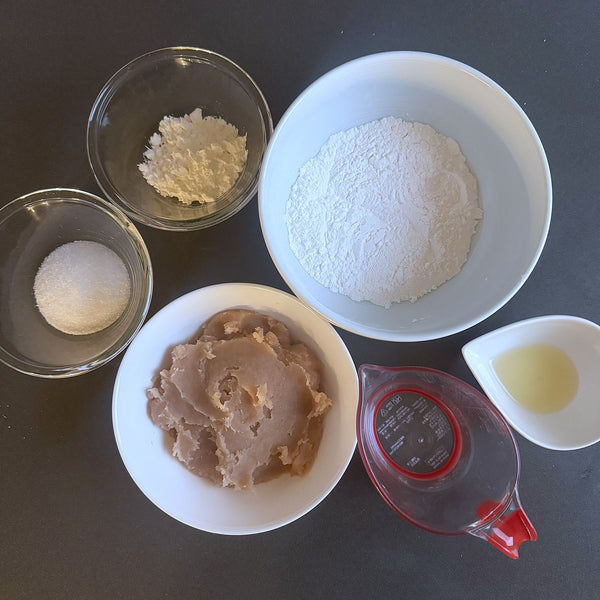 Making lemon mochi is simple, especially with the help of a microwave. The ingredients are straightforward: glutinous rice flour, sugar, lemon, white bean paste, and starch (to prevent sticking). Be sure to use an organic lemon, as the recipe includes the lemon zest. If you have store-bought white bean paste, you can skip the step of making it from canned beans.