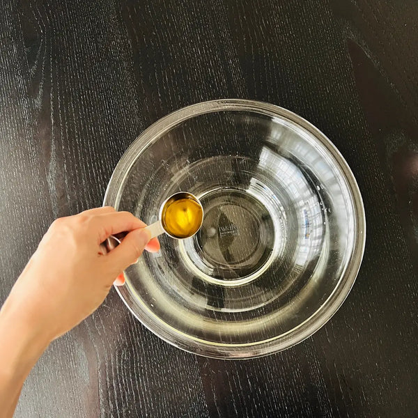 Put the sliced lotus root pieces into a bowl and mix them with vegetable oil and salt.