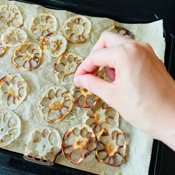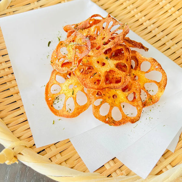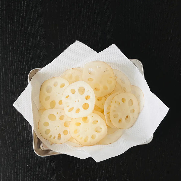 While potato chips are famous, lotus root chips are a nutritious alternative rich in Vitamin C and fiber. Despite its name, the lotus root (Renkon) is actually an enlarged stem. It is a staple in Japanese dishes like Kinpira or Chikuzen-ni, but making chips is the easiest way to enjoy it.