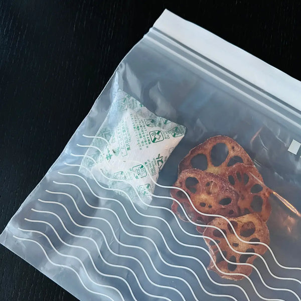 If you have leftover lotus root chips, put them in a zipper bag with a desiccant (something to remove moisture from the bag). They will stay fresh for up to two days. Enjoy!