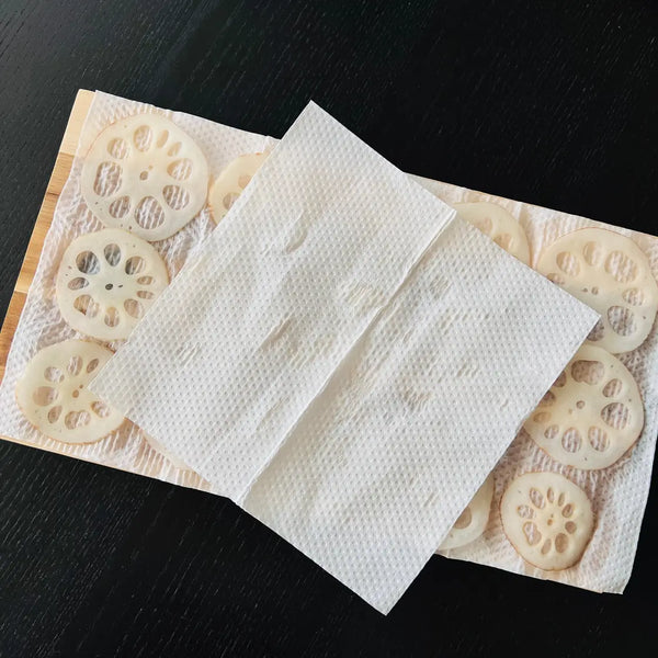 Drain and wipe the excess water off of the lotus root pieces with paper towels.