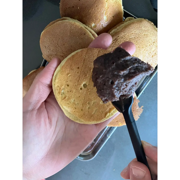 Dorayaki is a traditional Japanese confectionery featuring two round pancakes sandwiched with sweet red bean paste (Anko).