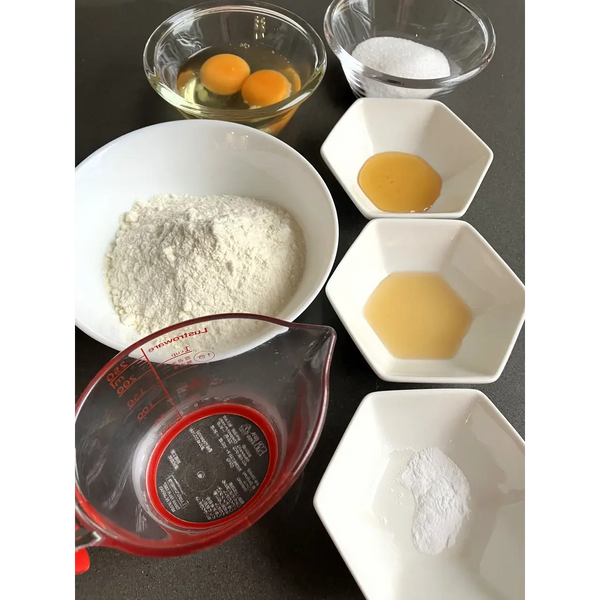 The ingredients are simple, resembling a pancake with the addition of honey and mirin for moisture. Mirin imparts a beautiful golden color, contributing to the unique flavor of these sweets.