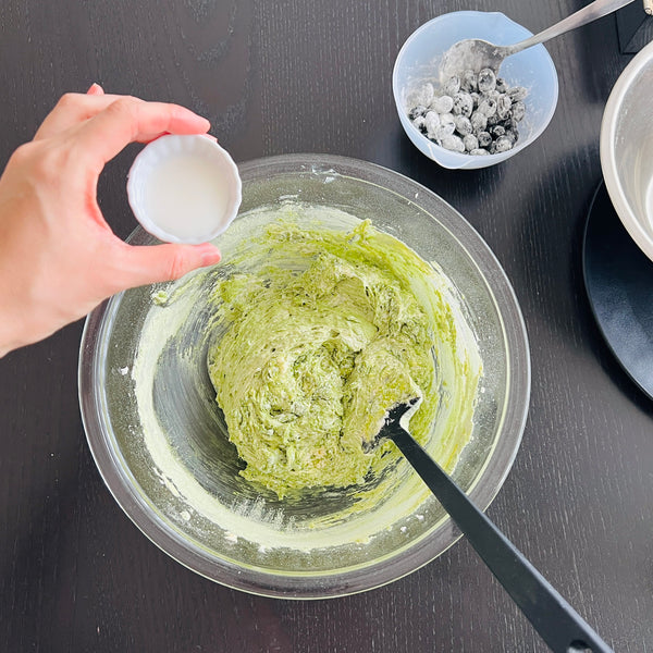 Another option is a vegan version. To make a vegan matcha pound cake, substitute regular sugar with beet sugar, butter with vegetable oil (such as refined sesame oil, which is almost odorless), and milk with soy milk, while omitting the eggs. Adding almond flour will help enhance the flavor.