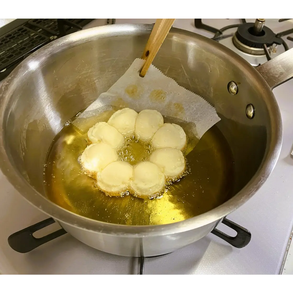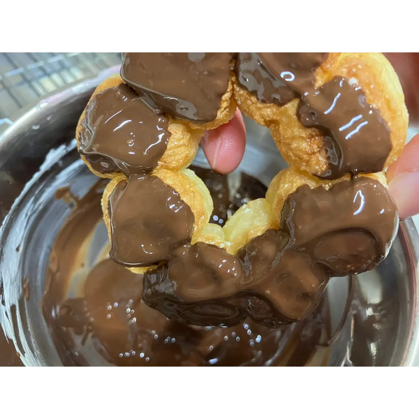 These mochi-like donuts, also called Pon-de-rings, are made from 8 small dough balls connected together in a ring. Biting into one reveals a delightful contrast: a lightly crisp outside with a chewy, satisfying inside.