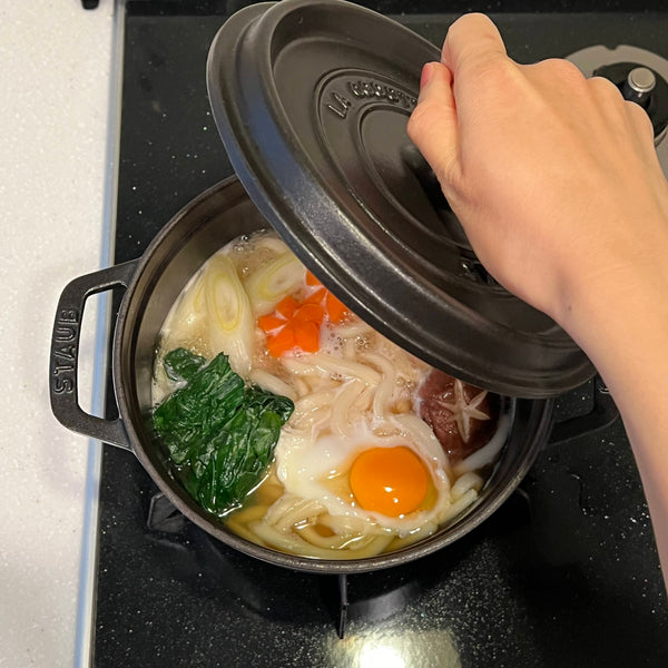 You can enjoy nabeyaki udon at specialty soba and udon restaurants, or grab ready-made or frozen versions at supermarkets and convenience stores. It often comes in an aluminum container, so you can place it right on the stove and heat until cooked. Super convenient!