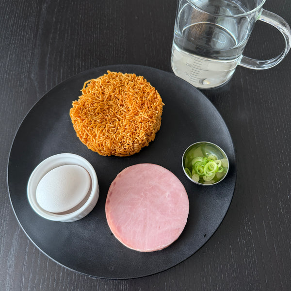 The film actually depicts how to make Ponyo ramen, and I followed the steps shown in the movie. Ponyo ramen is made with instant ramen and some key ingredients that define it “Ponyo ramen”: green onions (scallions), boiled egg and the crucial ingredient, ham. These are items that Japanese people commonly have in the fridge.