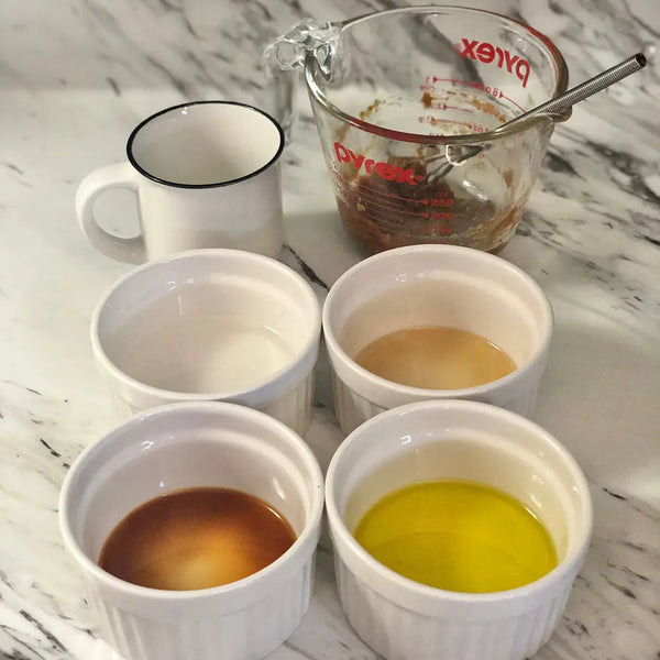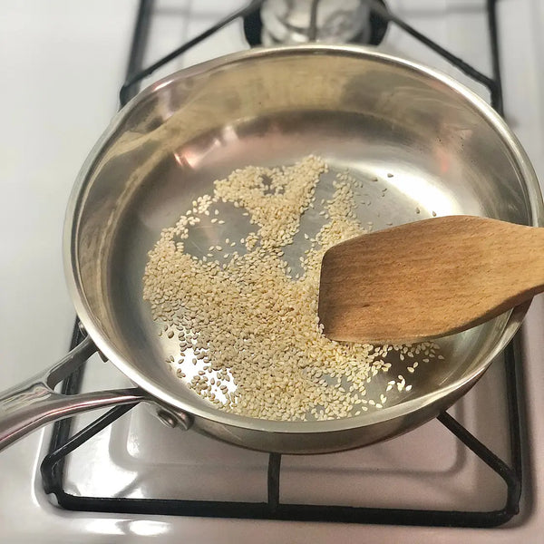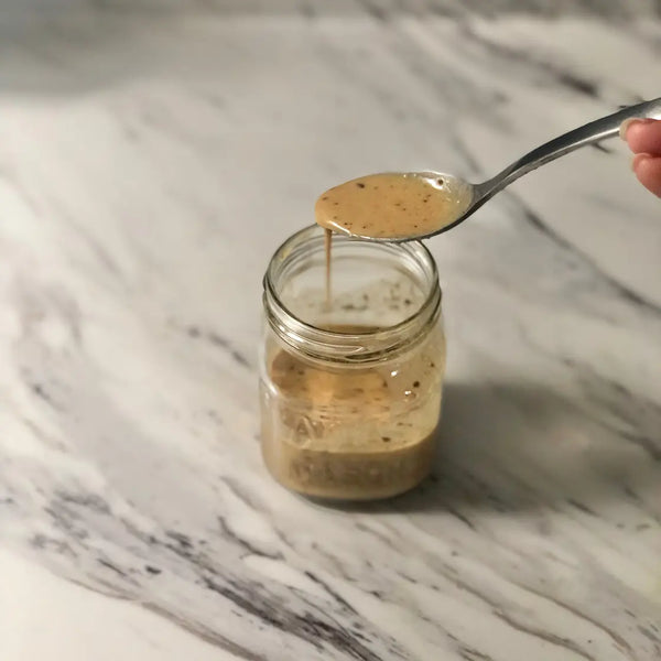 Sesame dressing, known as "goma dressing" in Japan, is a flavorful blend of toasted sesame seeds, soy sauce, vinegar, a hint of sugar, nerigoma (Japanese sesame paste), mayonnaise, and miso. With each bite, it's a burst of flavors, enriched by the inviting aroma of roasted sesame seeds.