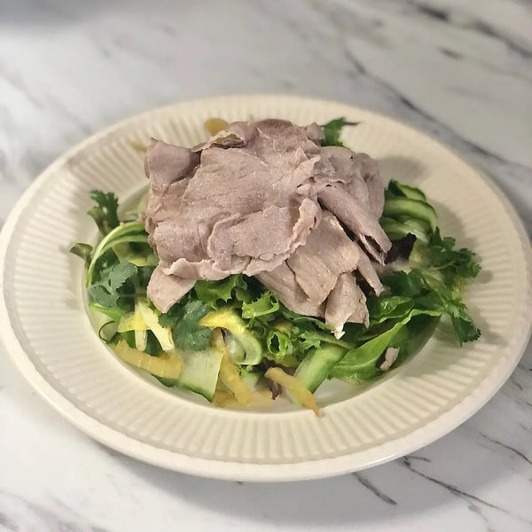 Picture a Shabu Shabu salad, inspired by the Japanese hot pot technique. This salad is all about diverse textures, featuring delicate pork slices briefly blanched in boiling water, alongside an array of crisp veggies like lettuce, cucumber, and radish. What makes it truly special is your ability to customize it with your favorite veggies, turning it into a canvas of flavors awaiting your creative touch.