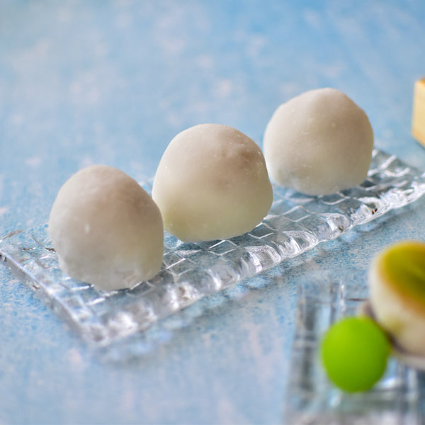 For grapes, there are various types in Japan, and shine muscat is one of the top ingredients used in combination with dessert. The main reasons shine muscat is often chosen are its juicy, crunchy texture that pairs beautifully with mochi, its large and seedless size that makes a single portion satisfying, and its refreshing muscat flavor that complements other ingredients without overpowering them.