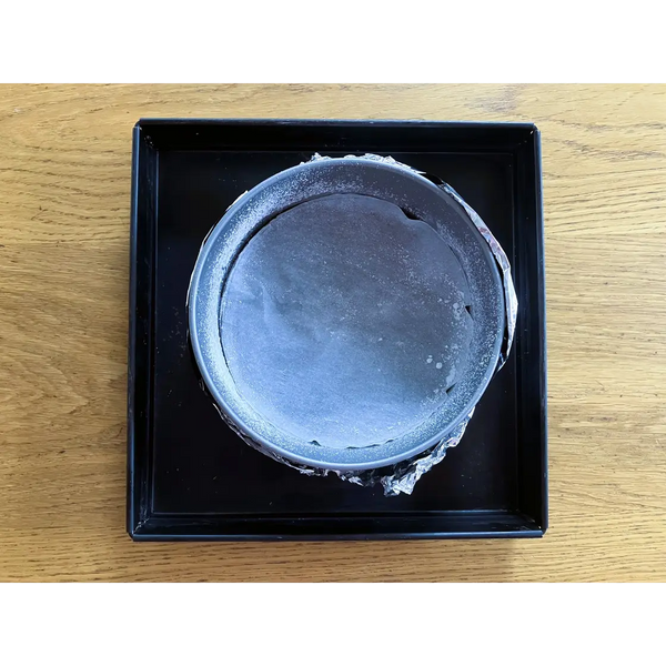 Coat the springform pan with a layer of butter and powdered sugar before adding in the cheesecake batter.