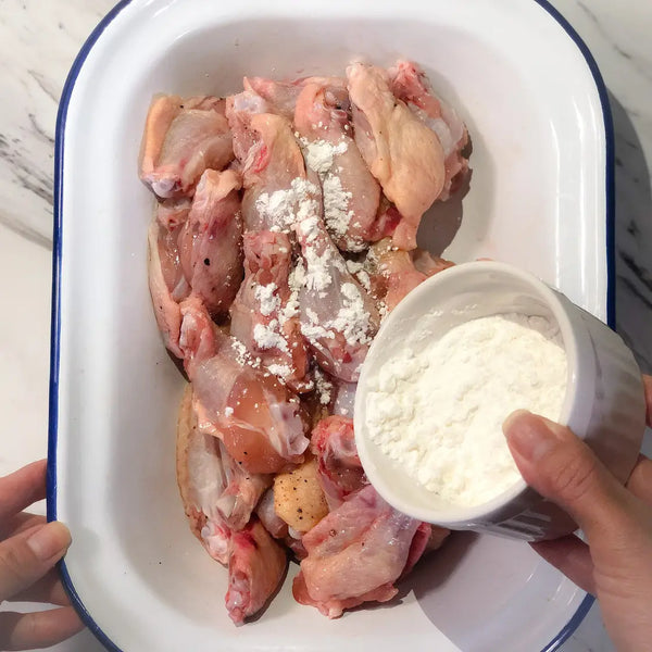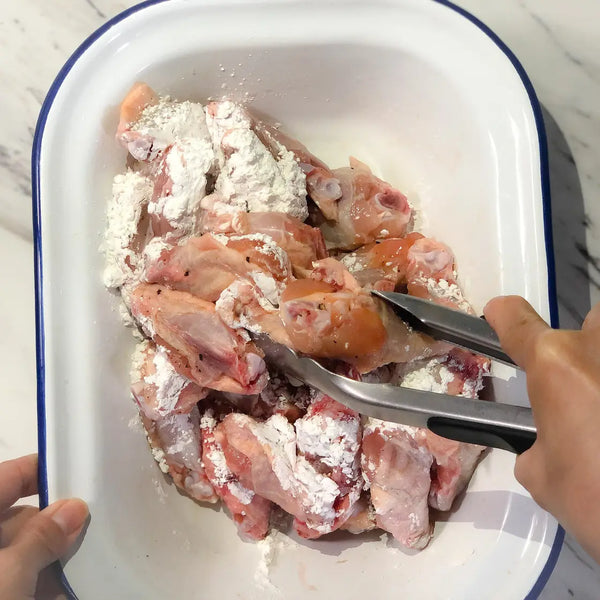 Now, let's explore how Tebasaki is made. It starts, of course, with chicken wings, which are divided into drumettes and wingettes to ensure even cooking. After a simple seasoning with salt and pepper, the wings are coated in a blend of flour and starch (potato or cornstarch), creating that essential crispiness. They’re then deep-fried until golden brown and wonderfully crunchy. The key technique is balancing textures—keeping the meat juicy and tender inside while giving the outside that addictive, crispy finish. (And don’t worry—we’ll also introduce alternative, lighter Tebasaki recipes in this article for those who prefer less deep-frying!)