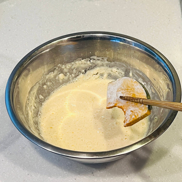 - Use cold water for the batter: When preparing the tempura batter, use cold water to prevent gluten from forming, which can make the texture thick and dense. Avoid overmixing for the same reason, as a light and airy batter is key to achieving crispy tempura.